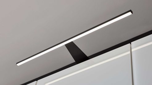 Das zweiteilige Aufbauleuchten-Set (Typ B20171) aus der Interliving Schlafzimmer Serie 1033 ist eine schon im Preis enthaltene perfekte Ergänzung für deinen Kleiderschrank. Die schwarzen LED-Aufsatzleuchten werden oberhalb des Schranks montiert und sorgen für eine angenehme, gleichmäßige Ausleuchtung – ideal, um Kleidung zu strukturieren und zu organisieren, auch wenn das Umgebungslicht mal schwächer ist.