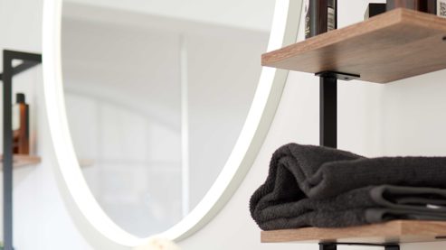 Spiegel, Armatur, Handtuchhalter und weitere dargestellte Einrichtungsgegenstände sind separat gegen Mehrpreis bestellbar.