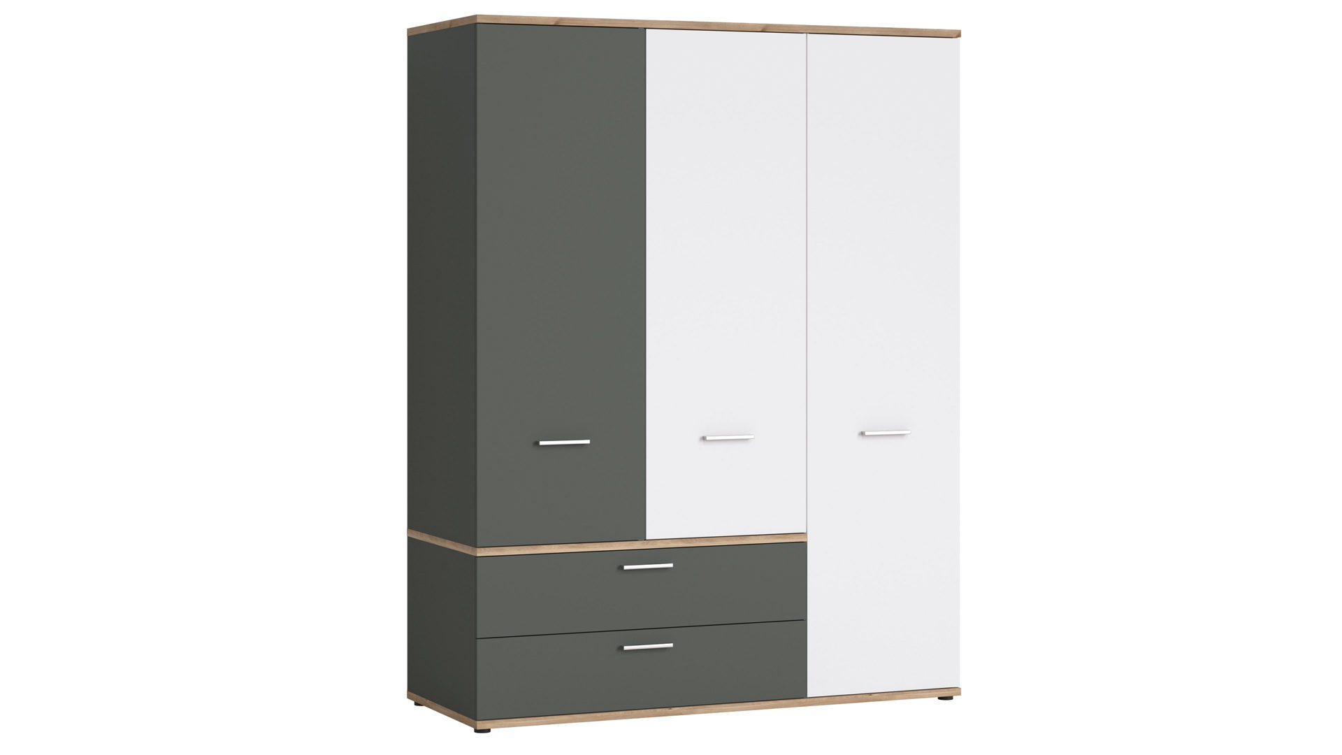 drei Türen, dahinter fünf Einlegeböden und zwei Kleiderstangen