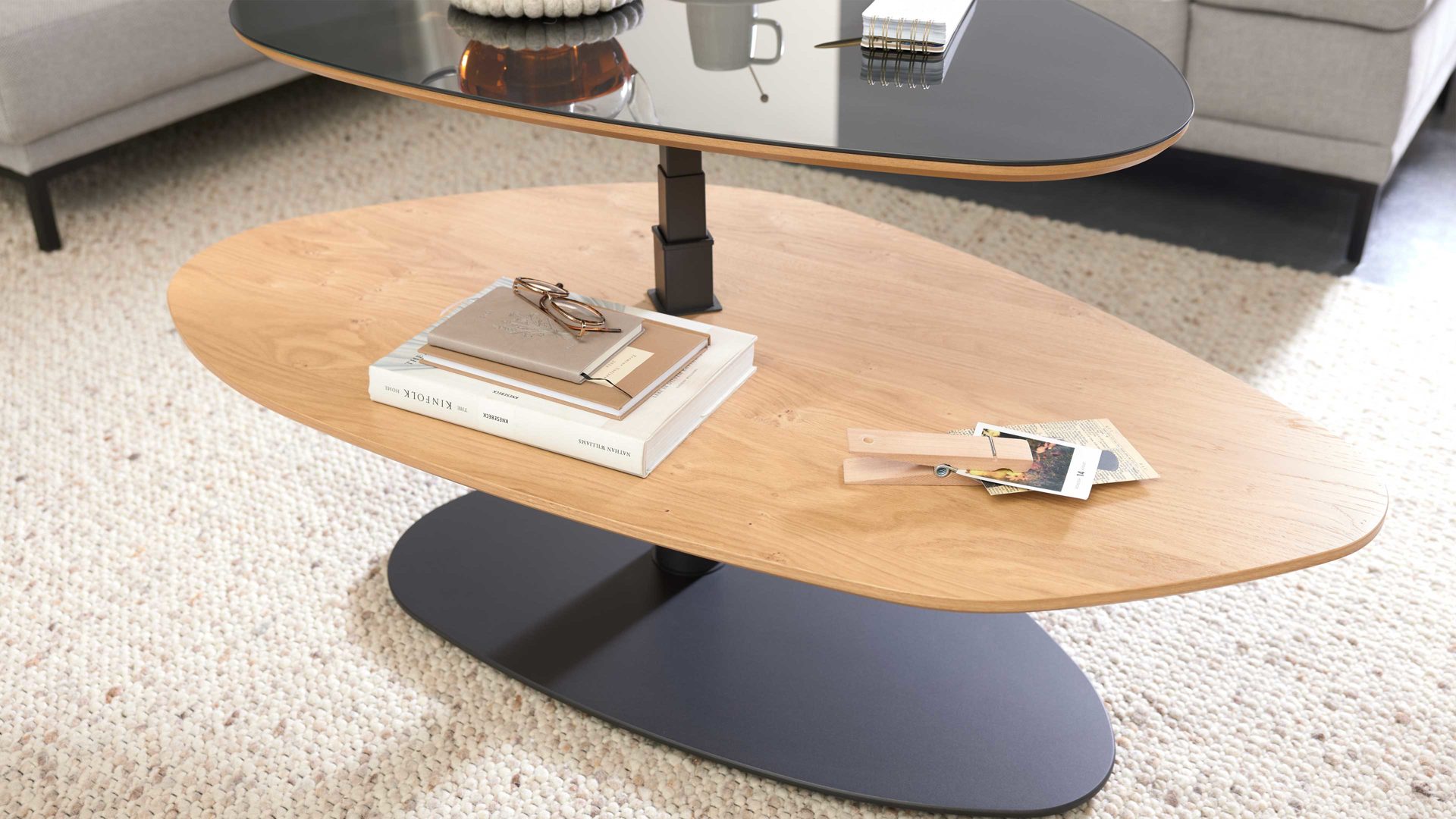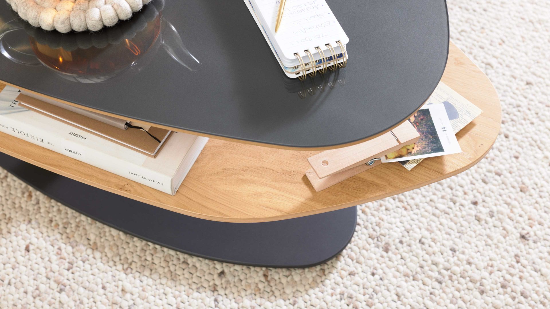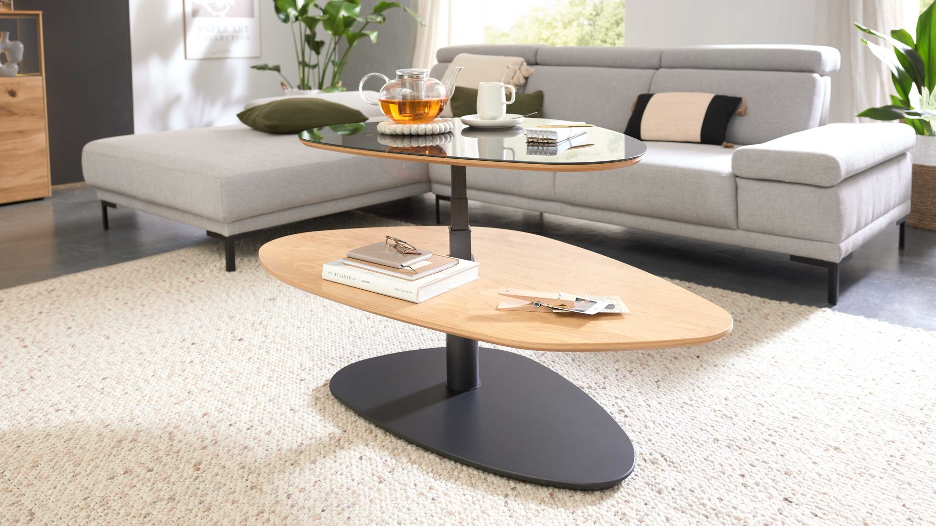 Mit seiner ungewöhnlichen Bootsform zieht der Couchtisch aus der Interliving Couchtisch Serie 6225 die Blicke auf sich.