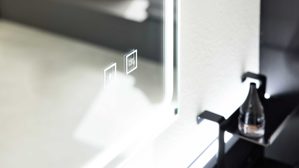 Der ca. 80 x 72 x 3 cm (B/LxHxT) große Wandspiegel (Typ 15281) bringt modernes Licht ins Bad. Umlaufend sandgestrahlte LED-Lichtfenster (ca. 12 mm), 30 Watt, 5700 Kelvin, fest verbaute Leuchtmittel, Spiegelheizung und Touchsensor garantieren höchsten Komfort. Energieeffizienzklasse F (Spektrum A bis G), Schutzklasse IP44.
