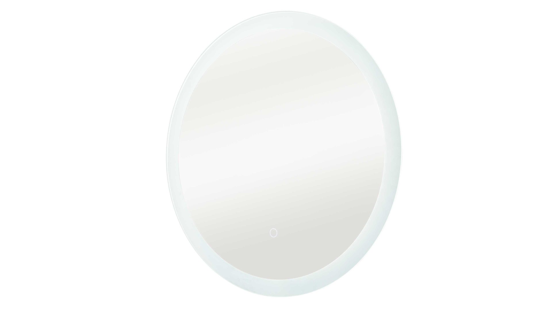 Der runde Spiegel (Typ 15201) mit einem Durchmesser von ca. 60 cm und einer Tiefe von ca. 2,5 cm wirkt elegant und zurückhaltend. Das umlaufende sandgestrahlte LED-Lichtfenster (ca. 4 cm breit) setzt ein dezentes Highlight und sorgt für gleichmäßige Helligkeit.