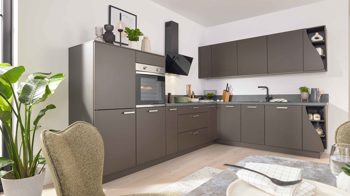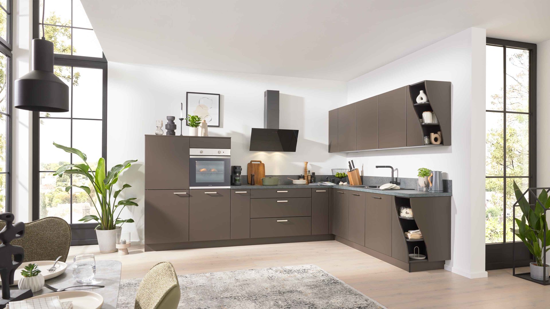 Interliving Küche Serie 3064 – stilvolle L-Küche in Sepiabraun und Lavagrau