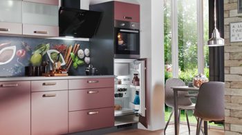 Im Lieferumfang der Systemküche sind außerdem mehrere Einbaugeräte enthalten: der IGNIS Kühlschrank ARL9VS2E mit der Energieeffizienzklasse E (Spektrum A bis G), der hochgebaute autarke Backofen AKB20102IX mit der Energieeffizienzklasse A (Spektrum A+++ bis D) und das autarke Glaskeramik-Kochfeld AKS309NE.
