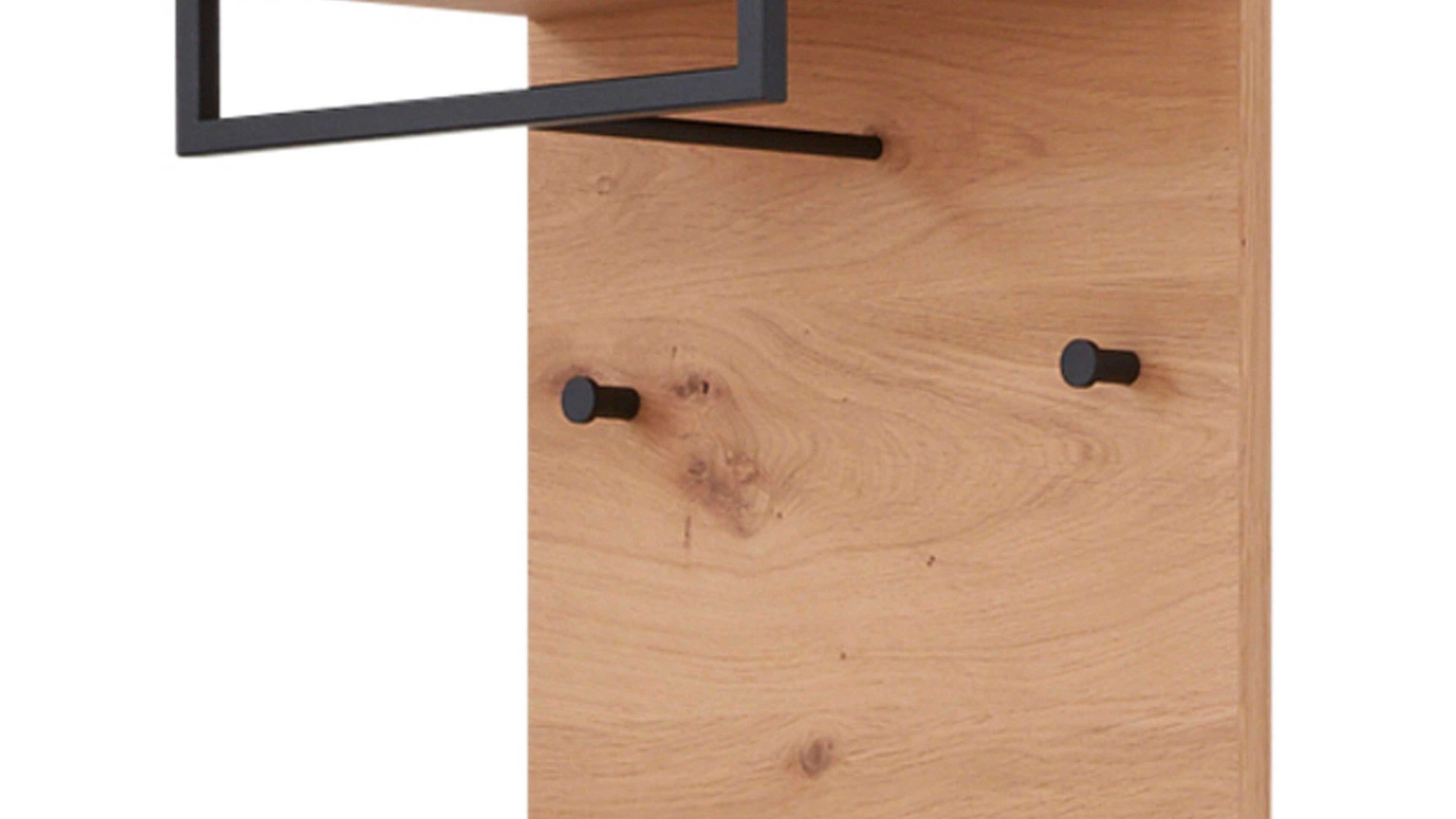 Natürlich, modern und perfekt kombinierbar: Die Wandgarderobe aus der Interliving Garderoben Serie 6005 verbindet einen Korpus aus teilmassiver, biancofarbener Eiche mit anthrazitfarbenen Metallelementen. Ablageboden, Kleiderstange und Garderobenhaken sind perfekt für Jacken, Taschen, Schals und alles, was du schnell griffbereit haben möchtest.