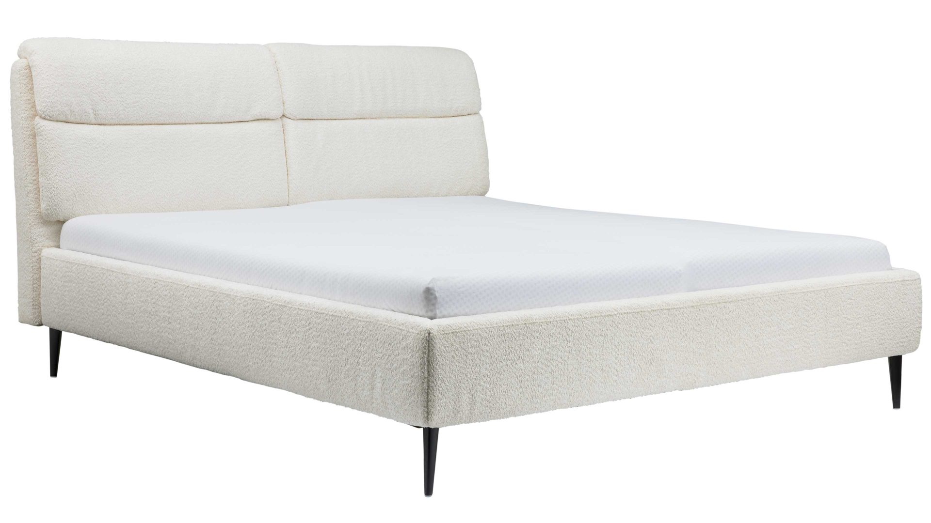 Die kubisch gepolsterten Bettseiten mit anthrazitfarben lackierter Innenseite ergänzen das klare Design und bilden zusammen mit den dunklen Metallfüßen ein harmonisches Gesamtbild. Für zusätzliche Gestaltungsfreiheit kannst du aus vier weiteren Fußvarianten in zwei Höhen wählen.