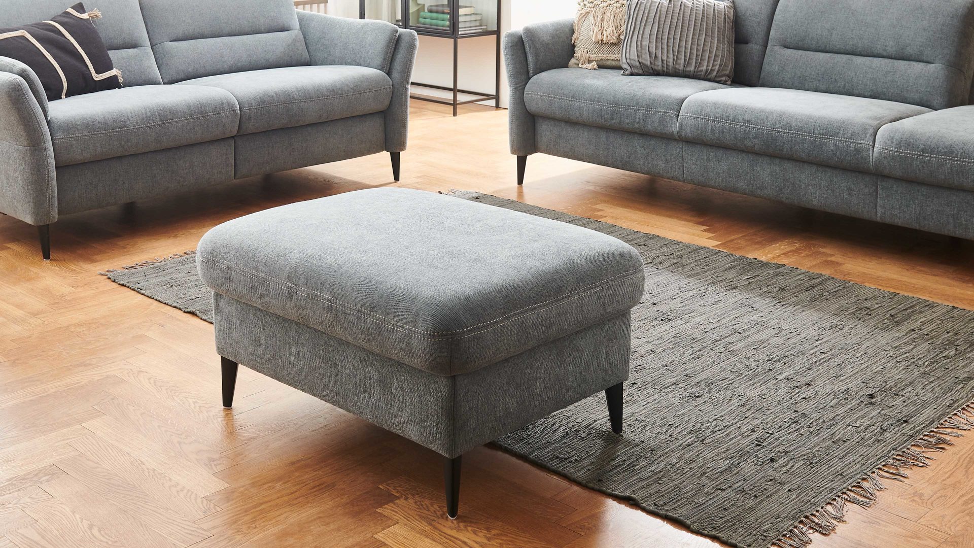 stahlfarbener Stoffbezug Milan & schwarze Metallfüße - ca. 86 x 66 cm