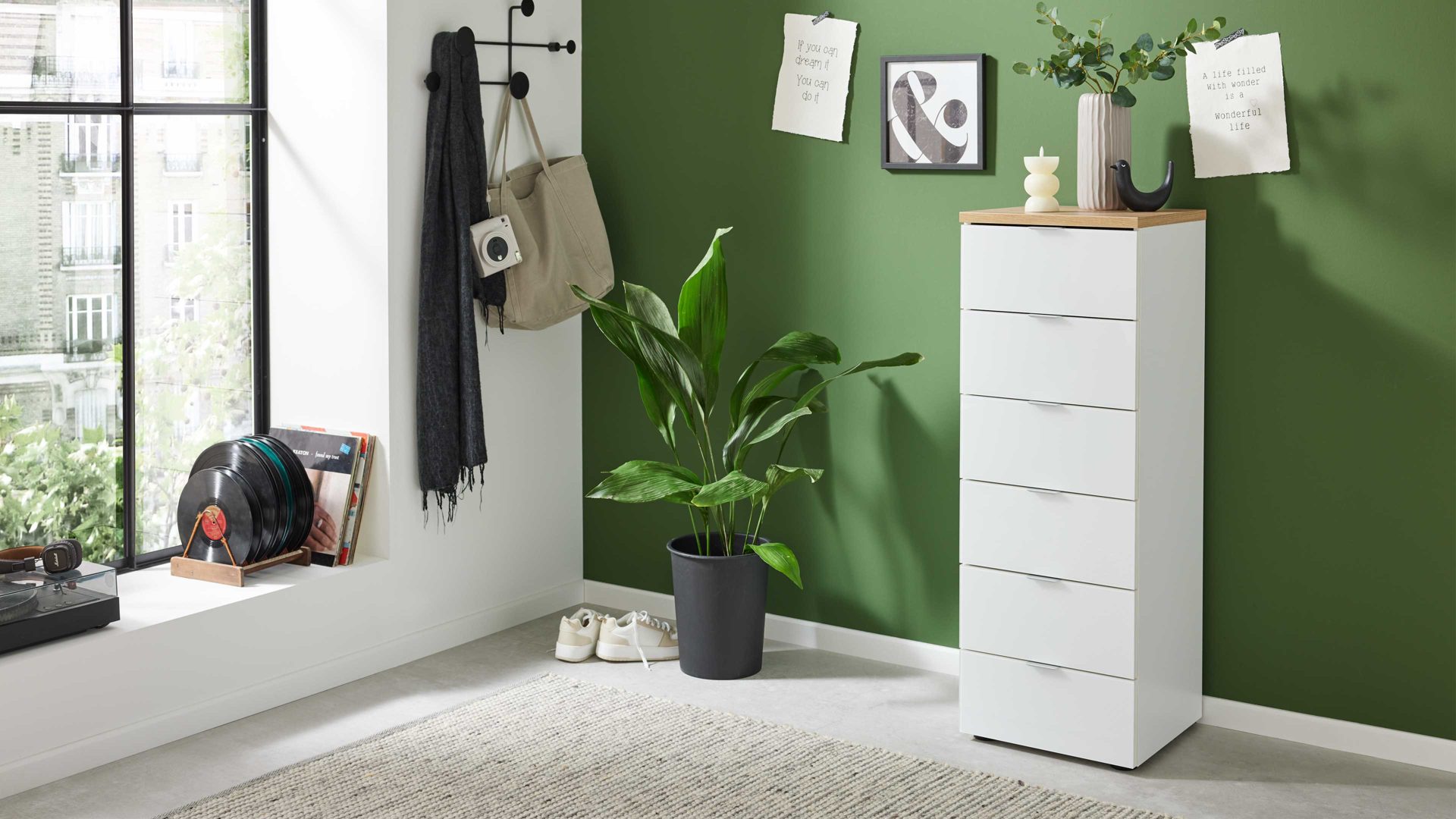 Die Wäschekommode wird klimafreundlich in Deutschland hergestellt und überzeugt durch langlebige Materialien sowie eine präzise Verarbeitung. Für dein gutes Gefühl erhältst du vom Hersteller 5 Jahre Herstellergarantie – ein verlässliches Zeichen für Qualität und Beständigkeit.