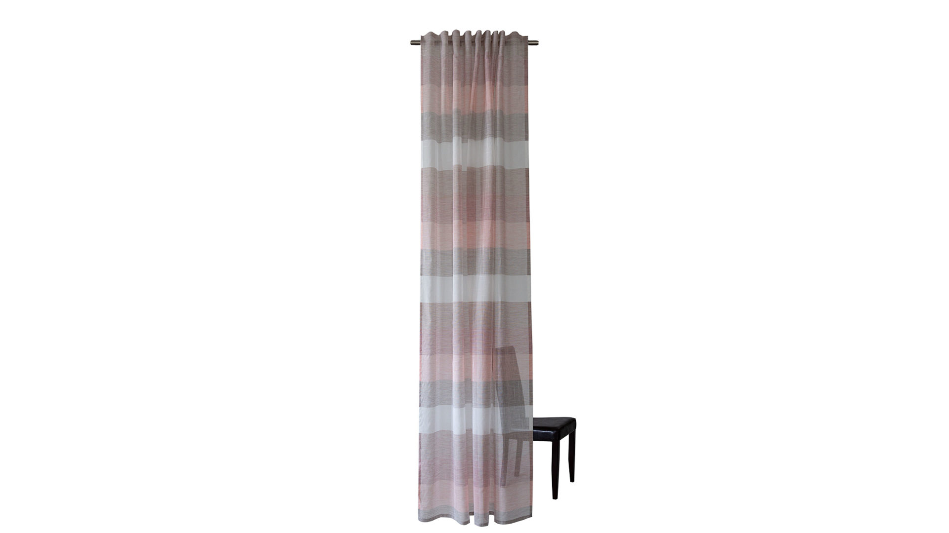 In zarten abgestimmten Rose-Natur Tönen kommt die HOMING Gardine Kadin mit verdeckter Schlaufe daher. Die feine Leinenstruktur bringt ein Stück Natur mit ins Haus und die farbig aufeinander abgestimmten Querstreifen setzen Akzente am Fenster. Diese Polyesterqualität bezeichnet eine Chemiefaser, bei der es sich um ein sehr pflegeleichtes Material handelt. Die Ware ist sowohl formbeständig als auch strapazierfähig. Außerdem läuft sie bei einer Wäsche bis maximal 30 Grad nicht ein und hat eine hohe Lichtbeständigkeit. Der pflegeleichte Schlaufenschal hat Maße von ca. 140 x 245 cm (BxL) und ist in weiteren Farben im Shop bestellbar.