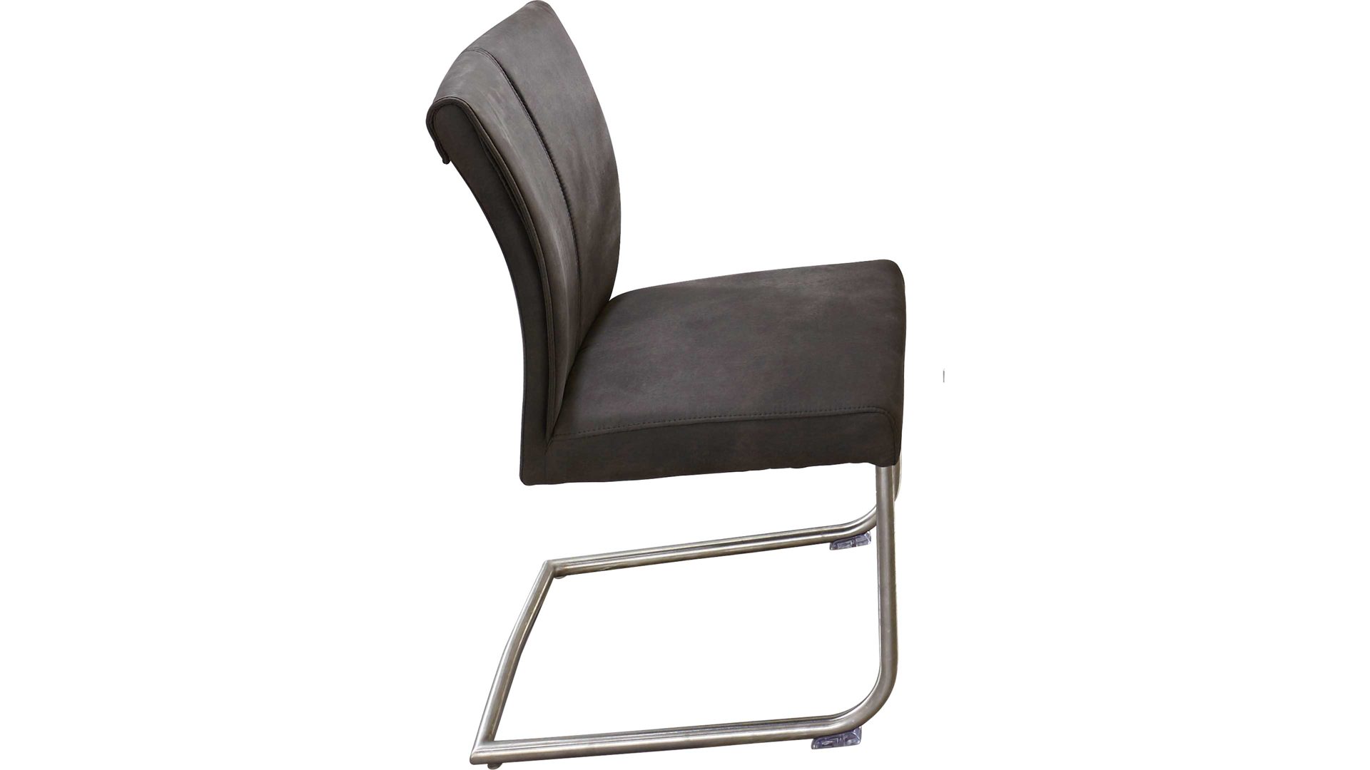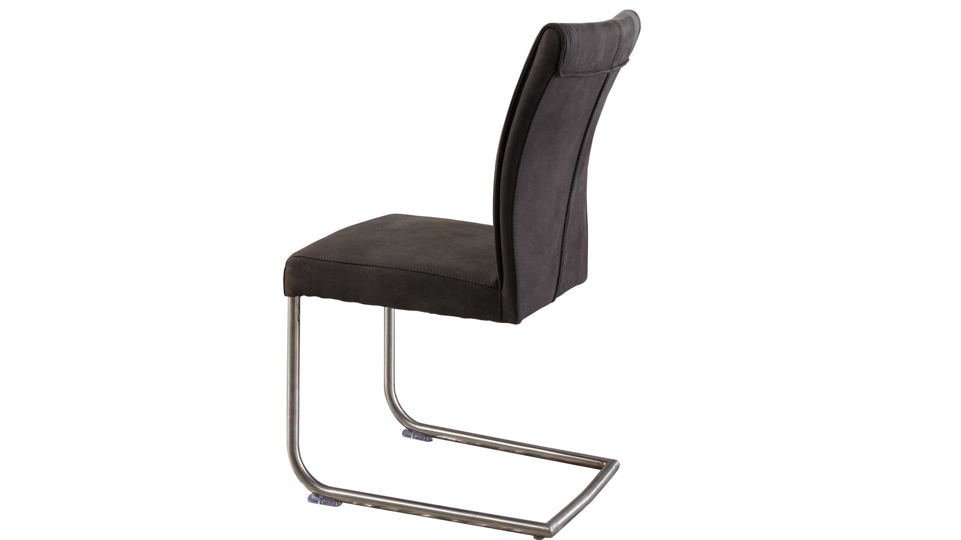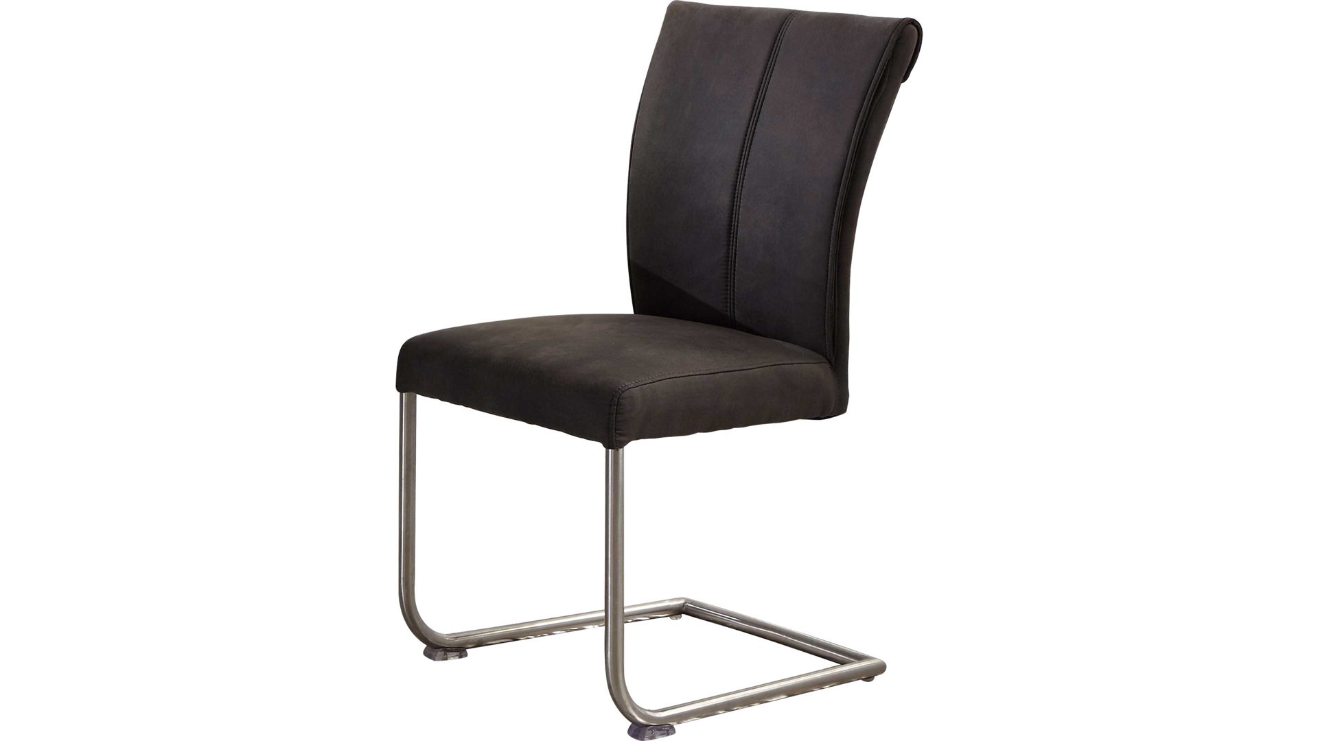 Er basiert auf einem robusten Rundrohrgestell in gebürstetem Edelstahl und bietet damit einen stabilen Stand. Durch die Wellenunterfederung und den weichen Mikrofaserbezug sitzen Sie besonders komfortabel. Anthrazitfarben sorgt der Stoffbezug für eine stilvolle Optik.