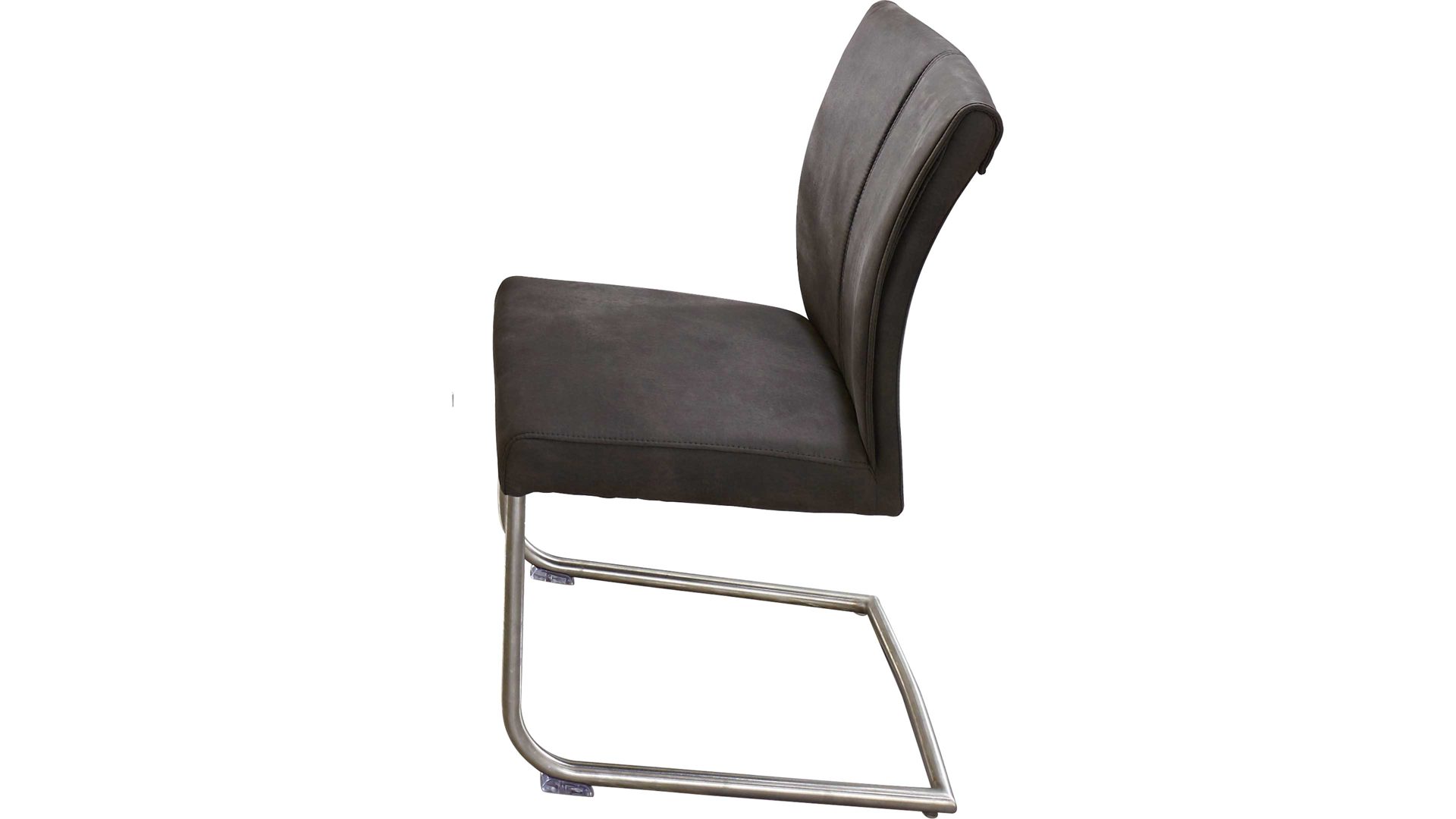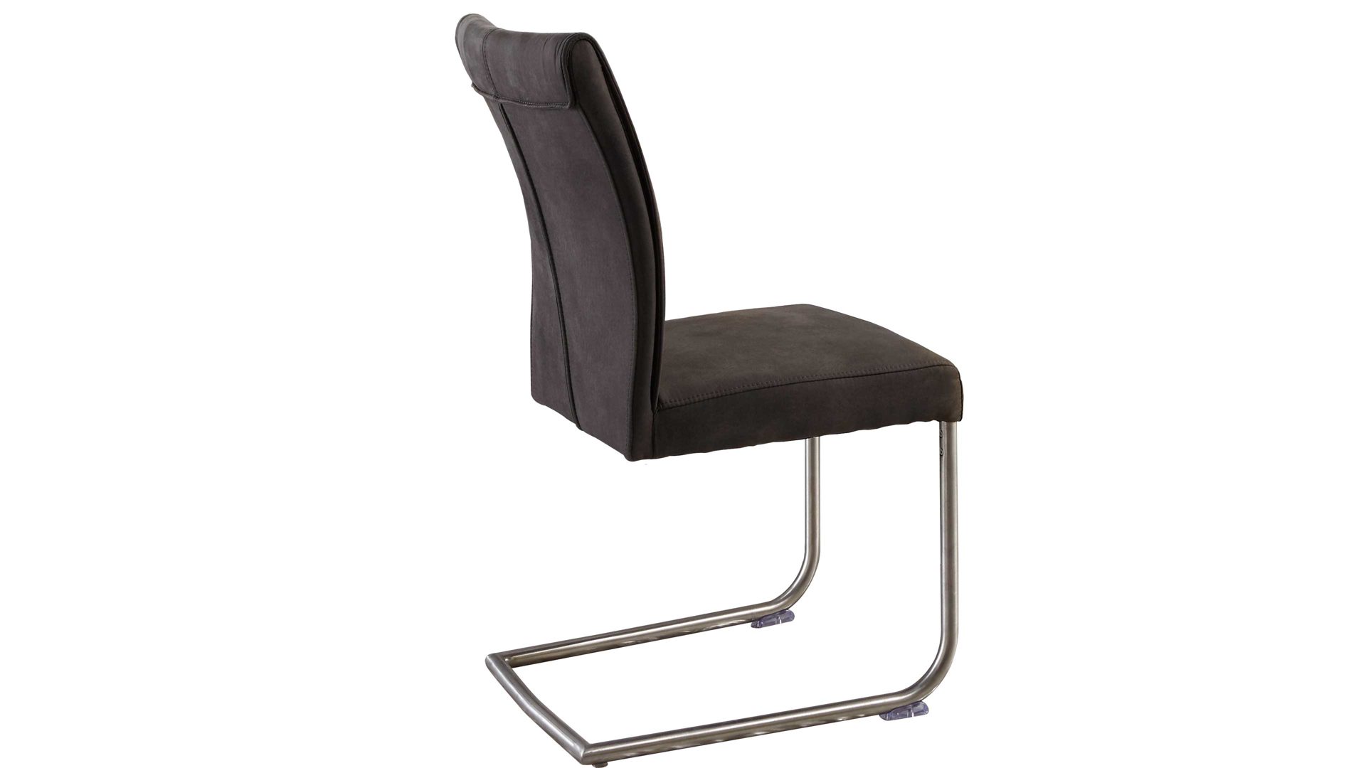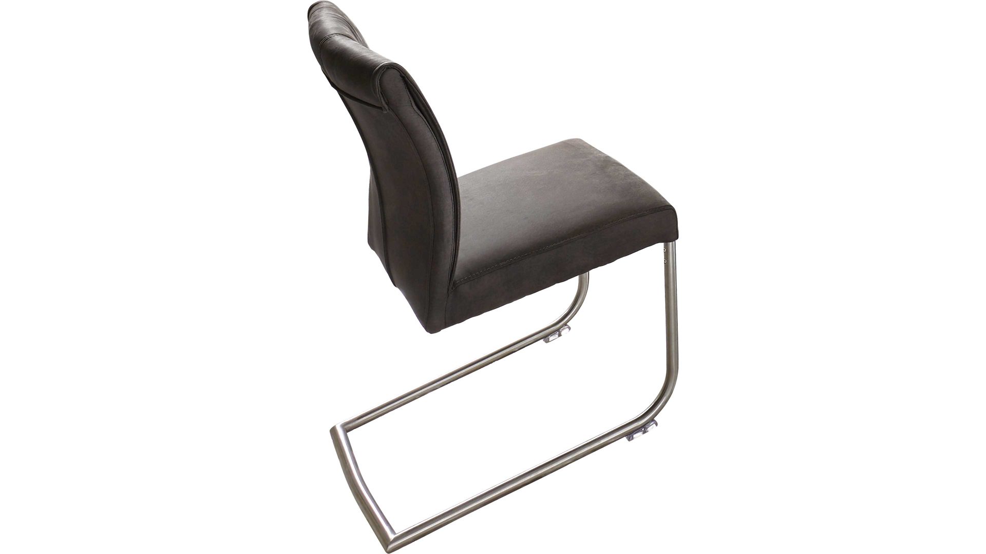 Er basiert auf einem robusten Rundrohrgestell in gebürstetem Edelstahl und bietet damit einen stabilen Stand. Durch die Wellenunterfederung und den weichen Mikrofaserbezug sitzen Sie besonders komfortabel. Anthrazitfarben sorgt der Stoffbezug für eine stilvolle Optik.