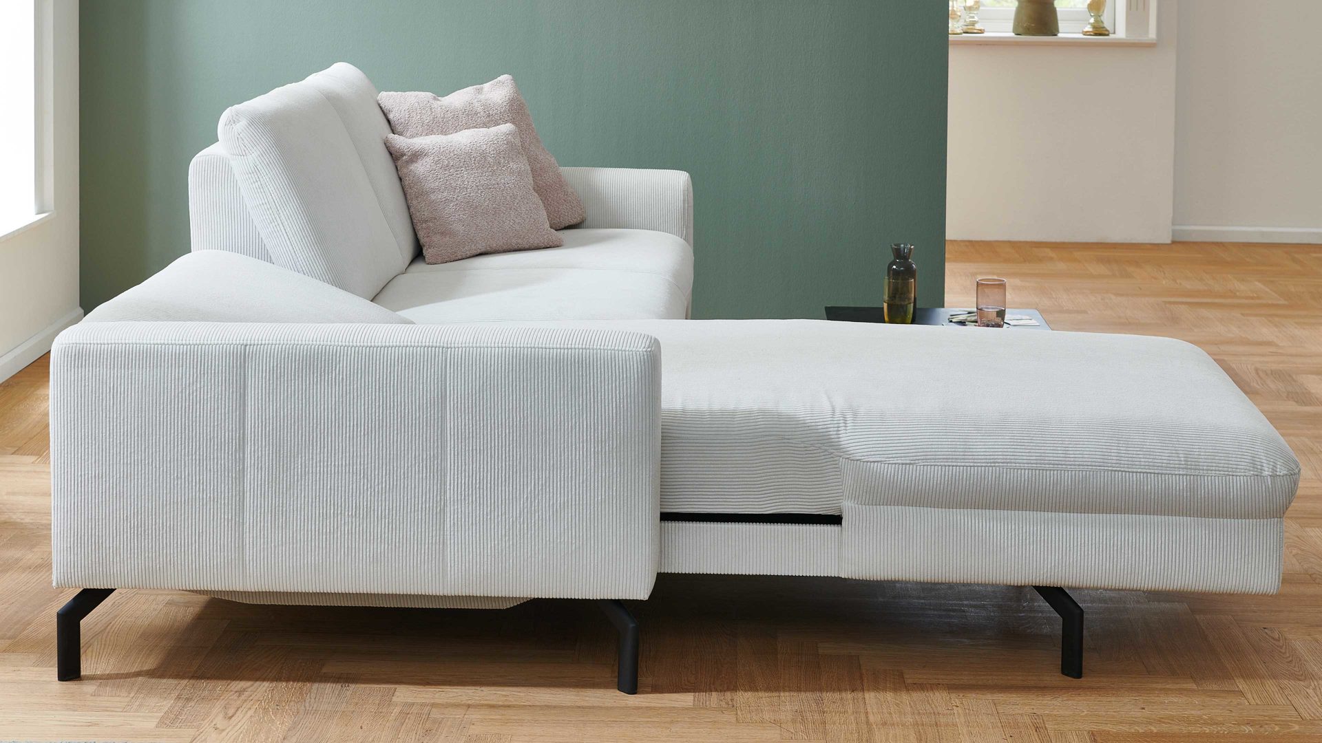 Die Polstermöbel sind in unzähligen Bezugvarianten und mit verschiedenen Fußtypen lieferbar. Darüber hinaus haben Sie die Option, statt der Kaltschaum- preisgleich die etwas festere Federkernpolsterung zu wählen. Gegen Mehrpreis sind außerdem viele Funktionen erhältlich - sie erhöhen den Komfort zusätzlich.