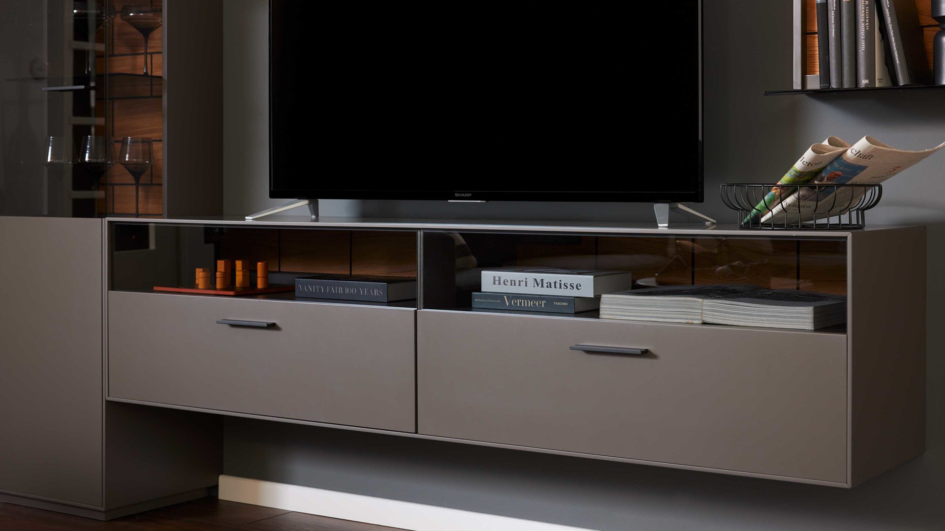 Das Lowboard wird fertig montiert geliefert und ist Teil eines flexibel kombinierbaren Wohnmöbelprogramms, das dir vielfältige Gestaltungsmöglichkeiten bietet. Optional kannst du das Möbel mit einer LED-Beleuchtung ergänzen, um stimmungsvolle Lichtakzente zu setzen.