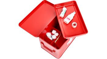 Diese Medizinbox ist ein praktisches und trendiges Wohnaccessoire. Der hochwertig pulverbeschichtete Edelstahl ist pflegeleicht und robust und verleiht der roten Aufbewahrungsbox Vintage-Charakter. Aufgeteilt in vier Fächer und ausgestattet mit einem entnehmbaren Metalleinsatz kann man den Inhalt individuell organisieren.