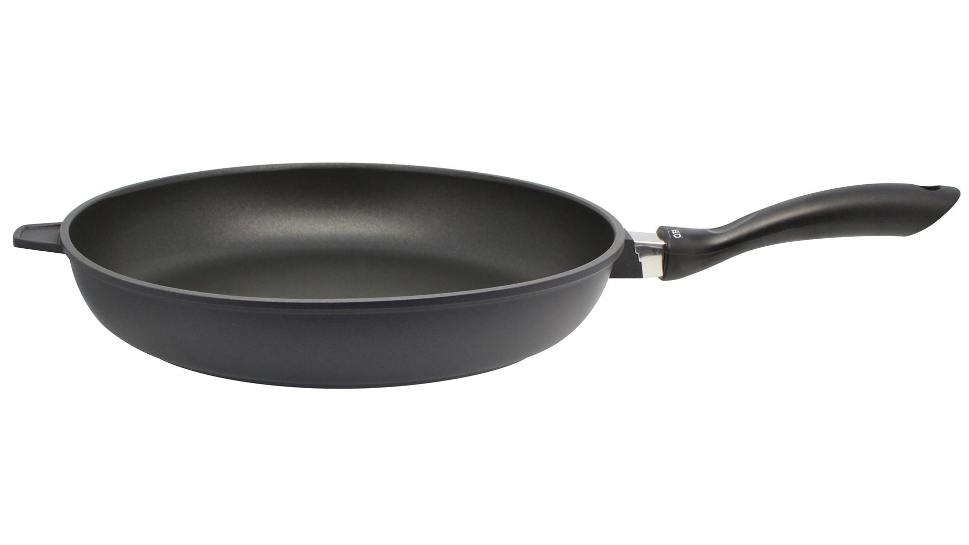 Die ELO® Crêpes-Pfanne Alucast aus Aluminiumguss sorgt dafür, dass Crêpes immer auf den Punkt gebacken sind. Da sie über einen gelochten Induktionsboden verfügt, ist sie für ausnahmslos alle Herdarten, auch für Induktion, geeignet. Die etwa 16 mm hohe Pfanne weist einen Durchmesser von ca. 28 cm, eine Bodenstärke von ca. 4,6 mm sowie eine Wandstärke von ca. 2,2 mm auf. Dank ihres schwarzen Kunststoffstiels mit integriertem Flammenschutz liegt sie besonders leicht und angenehm in der Hand.