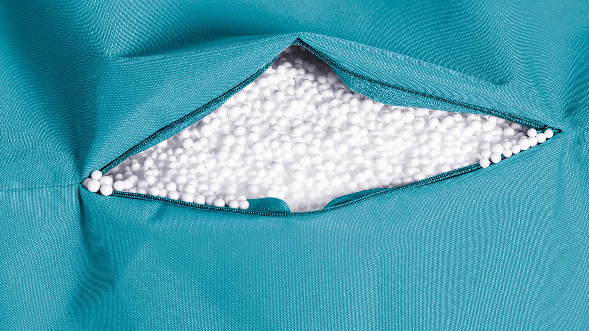 Der petrolfarbene Sitzsack-Hocker leistet Ihnen in jedem Wohnraum und auch als Terrassenmöbel oder Balkonmöbel gute Dienste.