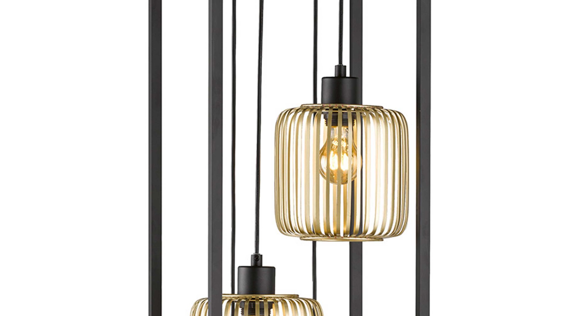 Details sandschwarzes Metall goldfarbene Metall-Lampenschirme   schwarzes Kunststoffkabel mit Fußtrittschalter, Länge ca. ...