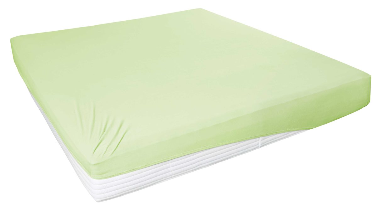 Für alle, die auf der Suche nach einem hochwertigen, flexiblen und langlebigen Bettlaken sind, bietet dieses limonengrüne Spannbettlaken aus elastischem Jersey-Material eine ideale Lösung. Das ca. 150 x 200 cm (BxL) große Laken besteht aus 95 % Baumwolle und 5 % Elastan und überzeugt mit einer perfekten Passform, die selbst extrahohe Matratzen zuverlässig umschließt. Die hohe Materialqualität mit ca. 170 g/m² sorgt für angenehmen Liegekomfort und eine ausgezeichnete Hautfreundlichkeit – ideal für erholsamen Schlaf.