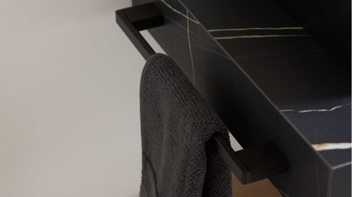 Der Handtuchhalter ist Bestandteil eines individuell planbaren Badmöbelprogramms. Damit lässt er sich optimal mit weiteren Elementen der Serie kombinieren und sorgt für ein stimmiges Gesamtbild im Badezimmer oder Gäste-WC.