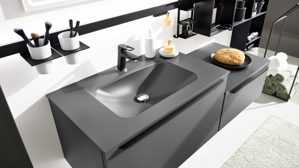 Alle Elemente lassen sich flexibel kombinieren und erweitern – so entsteht dein individuelles Badmöbel-Set. Robuste Materialien und pflegeleichte Oberflächen machen die Möbel alltagstauglich und langlebig. Die Kombination aus Schränken, Waschtisch, Spiegel und Sign Emotion System sorgt für ein rundum durchdachtes Badezimmerkonzept.