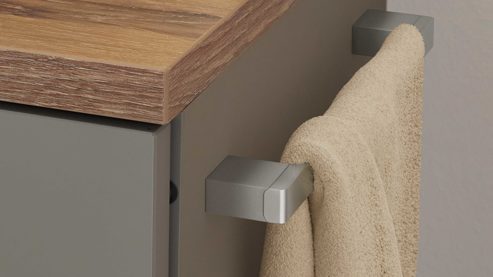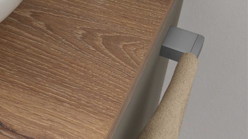 Der Handtuchhalter ist Bestandteil eines individuell planbaren Badmöbelprogramms. Damit lässt er sich optimal mit weiteren Elementen der Serie kombinieren und sorgt für ein stimmiges Gesamtbild im Badezimmer oder Gäste-WC.