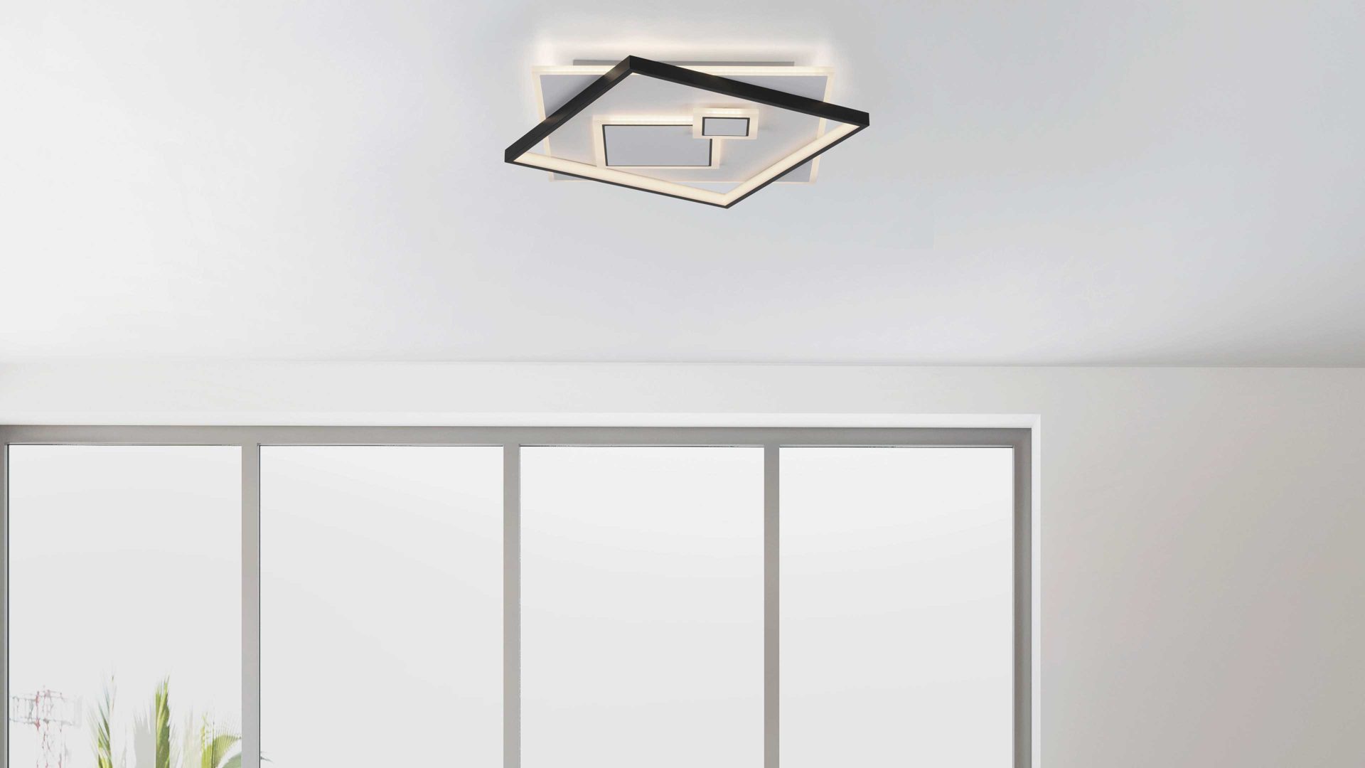 mattweißes Metall, kombiniert mit mattschwarzem Metall und weißen Acryl-Leuchtmittelabdeckungen