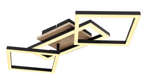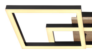 mattschwarzes Aluminium und holzfarbenes MDF, kombiniert mit opalfarbenem Acryl
