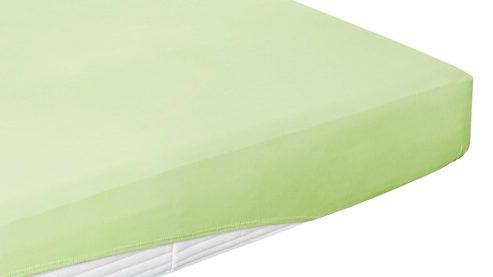 Für alle, die auf der Suche nach einem hochwertigen, flexiblen und langlebigen Bettlaken sind, bietet dieses limonengrüne Spannbettlaken aus elastischem Jersey-Material eine ideale Lösung. Das ca. 150 x 200 cm (BxL) große Laken besteht aus 95 % Baumwolle und 5 % Elastan und überzeugt mit einer perfekten Passform, die selbst extrahohe Matratzen zuverlässig umschließt. Die hohe Materialqualität mit ca. 170 g/m² sorgt für angenehmen Liegekomfort und eine ausgezeichnete Hautfreundlichkeit – ideal für erholsamen Schlaf.