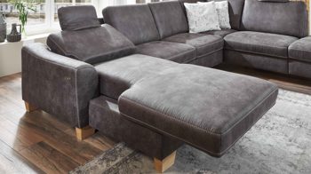 Gönnen Sie sich zu diesem Ecksofa Kopfstützen, Kissen und weitere Funktionen gegen Mehrpreis. Darüber hinaus ist die Eckkombination alternativ auch mit Metallfüßen lieferbar. Zusätzlich gibt es zu dieser Polsterecke auch eine attraktive Bezugsauswahl sowie eine große Planungsvilefalt.