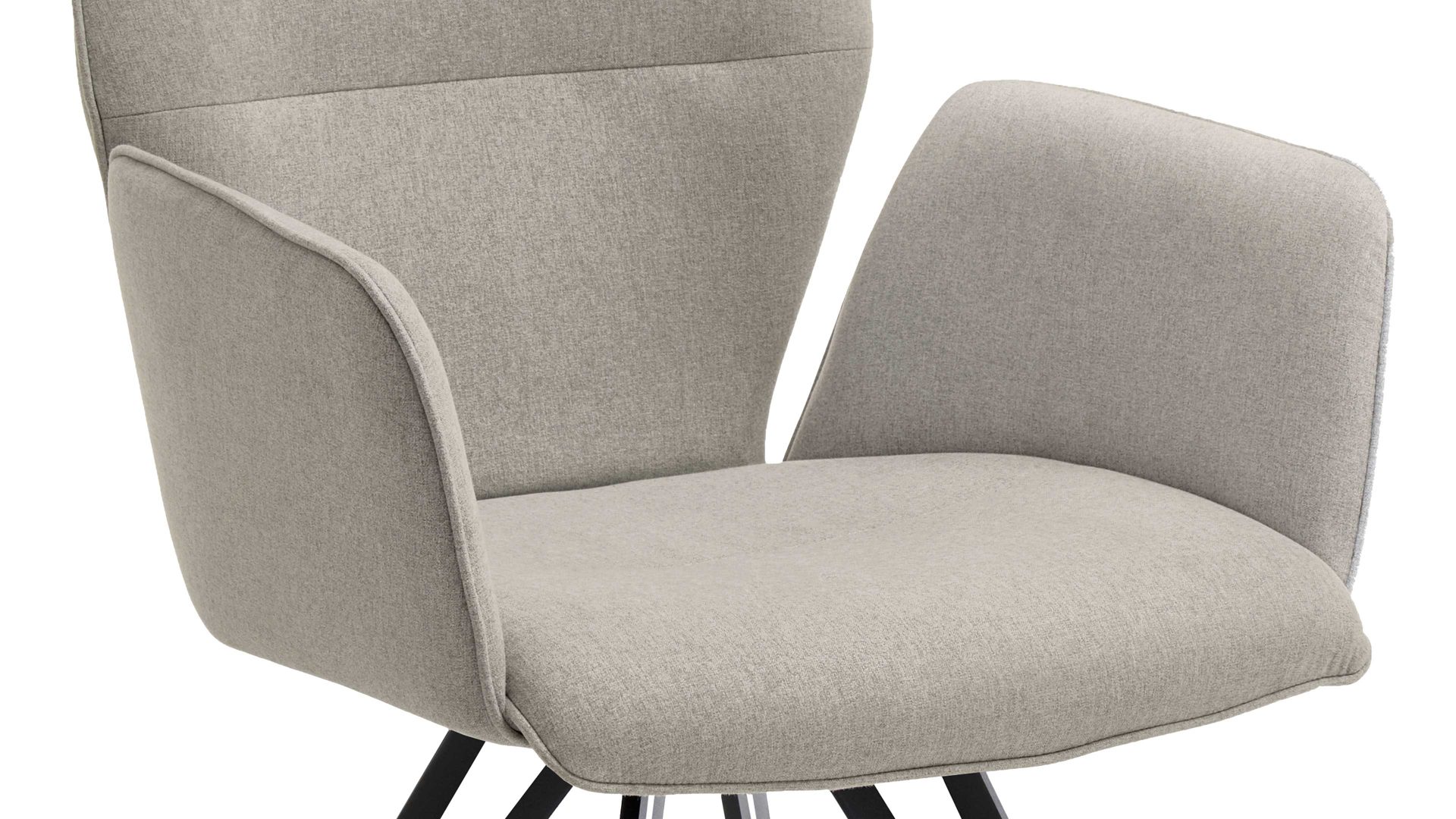 Der schicke NIEHOFF SITZMÖBEL Designer-Armlehnstuhl Merlot verfügt über einen silberfarbenen Webstoffbezug sowie ein schwarz pulverbeschichtetes Vierfuß-Flachstahlgestell, das für zuverlässige Stabilität sorgt. Bei Maßen von ca. 62 x 91 x 60 cm (BxHxT) weist er eine ergonomisch optimale Sitzhöhe von ca. 49 cm auf.