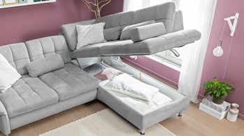 Das Modell Modulmaster MM-MP1143 bietet prinzipiell einen umfangreichen Typenplan, sodass Sie sich Ihre erträumte Wohnlandschaft individuell zusammenstellen können. Darüber hinaus profitieren Sie von einer großen, attraktiven Bezugauswahl und zahlreichen weiteren Optionen, etwa speziellen Komfortfunktionen, die gegen Mehrpreis zur Verfügung stehen, und weiterem Zubehör, zu dem auch der Bettkasten gehört.