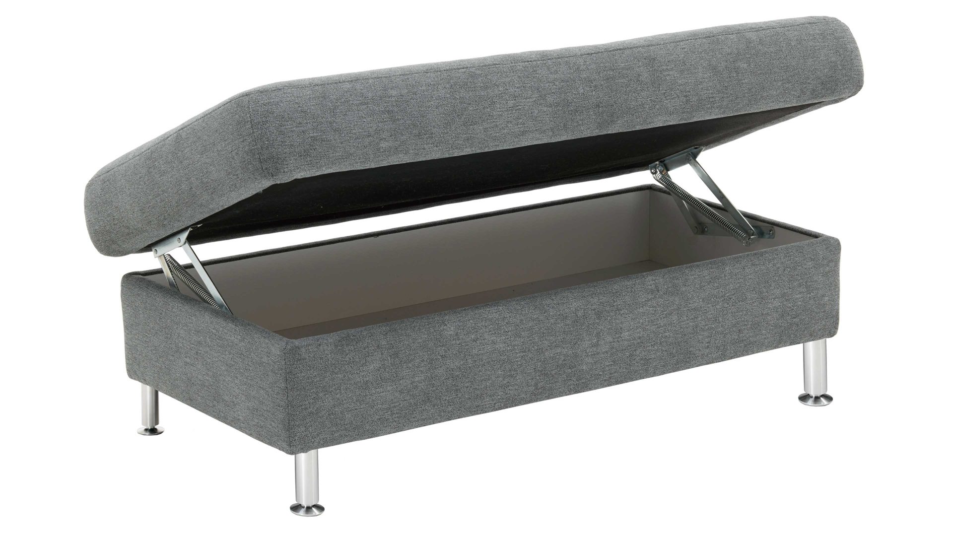 Dank der Kaltschaumpolsterung auf stützender Wellenunterfederung sitzen Sie auf dem XXL-Hocker sehr bequem. Er hat eine Sitzhöhe von ca. 48 cm und eine Sitztiefe von ca. 68 cm, bei Gesamtmaßen von ca. 132 x 48 x 68 cm (BxHxT). Praktisch ist der integrierte Stauraum: Klappen Sie den Hocker einfach auf, um beispielsweise Textilien wie Zierkissen oder Decken, aber auch Spiele, Kinderspielzeug oder andere Gegenstände unterzubringen.