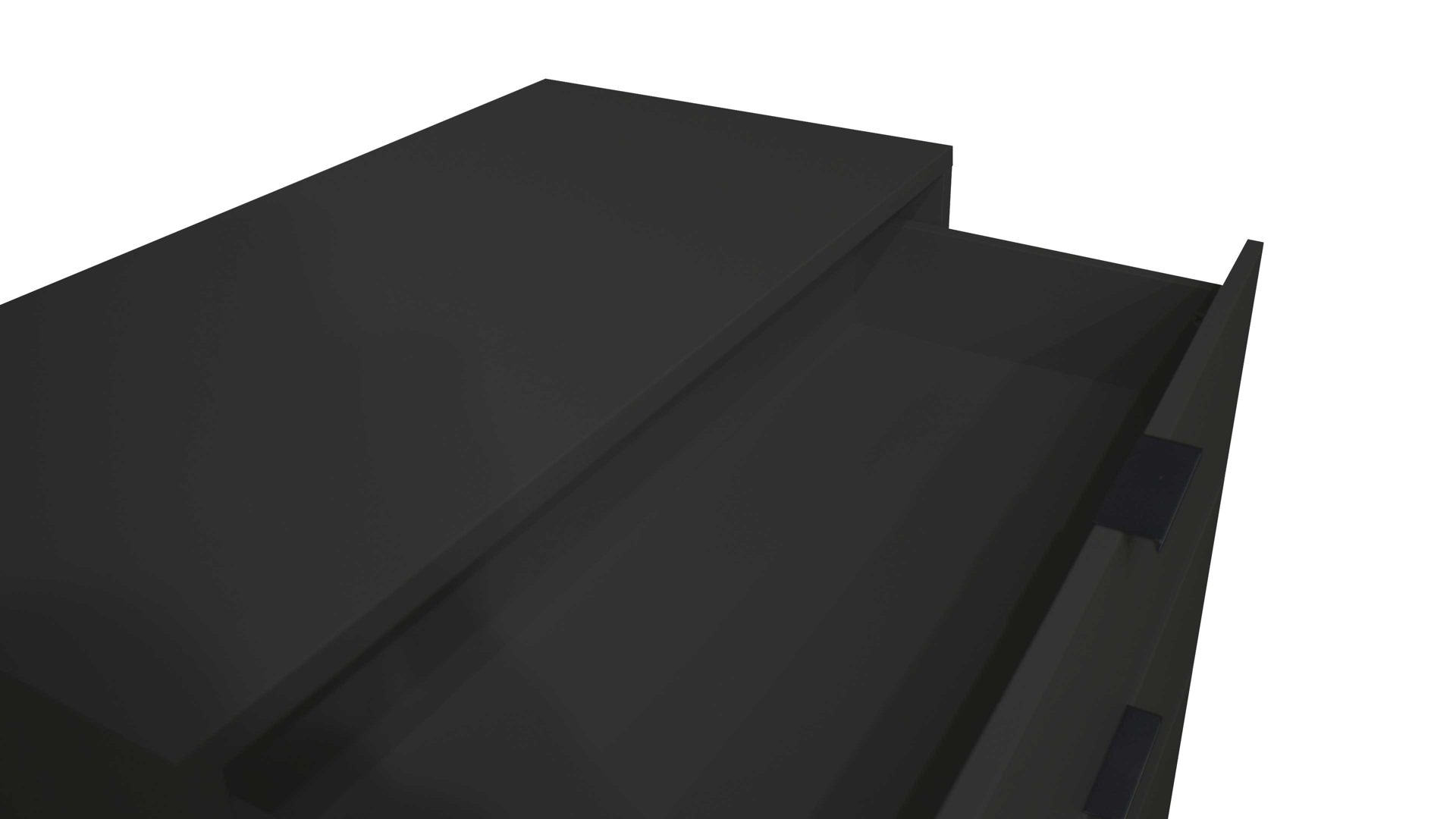 Mit ihren anthrazitfarbenen Mattlackoberflächen verkörpert die Schubladenkommode Bonnie moderne Eleganz. Schwarze Metallgriffe und praktisch höhenverstellbare Möbelgleiter runden das stilvolle Design harmonisch ab. Zu den qualitativen Höhepunkten gehören überdies die widerstandsfähigen abgerundeten Dickkanten.