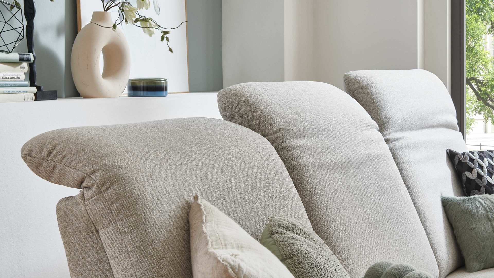 Geben Sie Ihrem Wohnzimmer mit der Kopfteilverstellung aus dem Polsterprogramm Tiamo Plus eine persönliche Note und genießen Sie maximalen Komfort und entspannte Stunden auf Ihrer Couch.