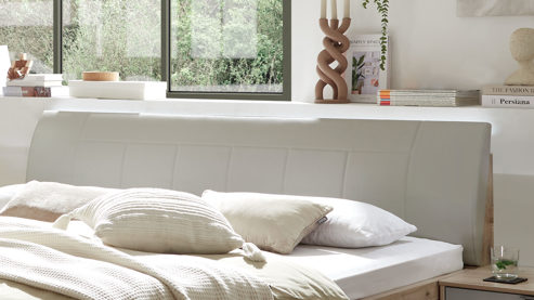 Bettgestelle sind in vier Breiten, vier Längen und zwei Kunstlederfarben erhältlich