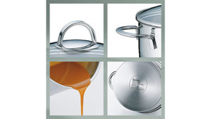 In ausgezeichneter Qualität: der große Gemüsetopf Cailin aus 18/10 Edelstahl in Glanzoptik, mit Kapselboden und 0,6 mm Wandstärke. Inklusive Glasdeckel mit Edelstahlgriff. Geeignet für Gas, Glas-Keramik E-Herd und Induktionsherd. Backofenfest bis 180° C. Maße ca. 24 x 19 cm (DxH), Volumen 8,5 l. Spülmaschinenfest. Lieferung im Geschenkkarton.