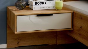 Das zweiteilige Hängekonsolen-Set bringt Leichtigkeit und Ordnung in deinen Schlafbereich. Mit Maßen von je ca. 60 x 48 x 43 cm (B/LxHxT) bieten die Konsolen praktischen Stauraum direkt am Bett. Jede Konsole ist mit einer Schublade mit Glasfront ausgestattet und wird wandhängend montiert – für eine moderne, schwebende Optik und eine einfache Bodenreinigung.